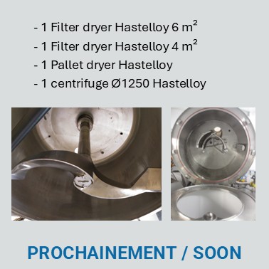 Atelier PILOTE / FLS, réacteurs émaillés, filtres, pompes ATEX....
