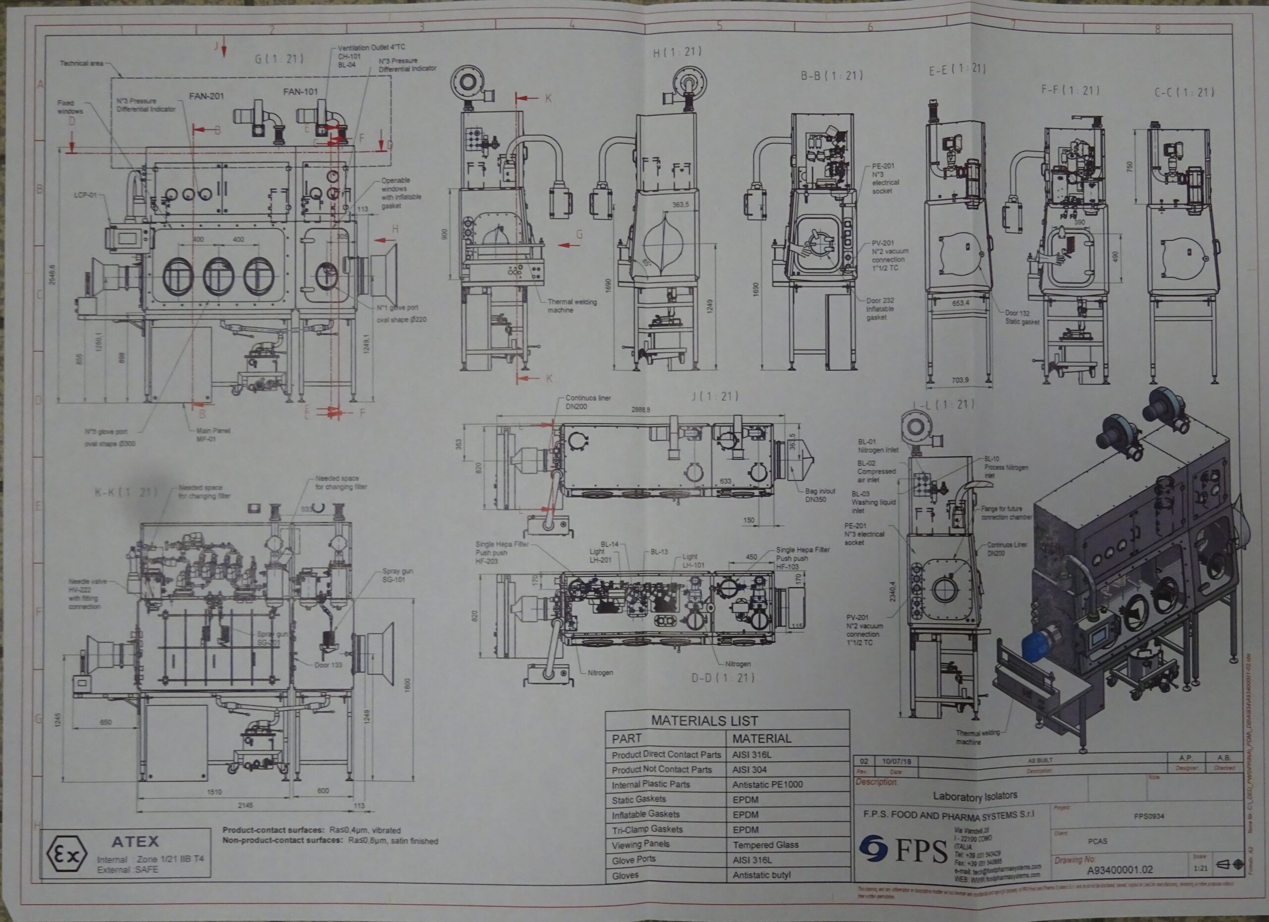 IMPORTANT : Utilisez la flèche de droite de votre clavier pour faire défiler les photos Isolateur de laboratoire FPS0934 ATEX année de construction 2018 rugosité parties intérieur < 0,4 µm rugosité parties extérieures < 0,8 µm utilisée a priori une seule fois Pompe à vide VACUUBRAND MV 10C NT ATEX soudeuse STANOK PSM400 plan de meilleure résolution sur demande