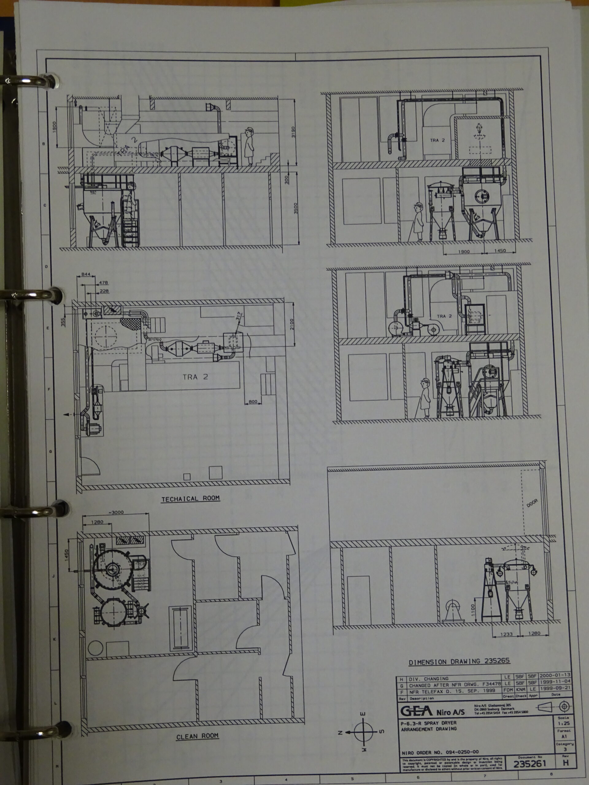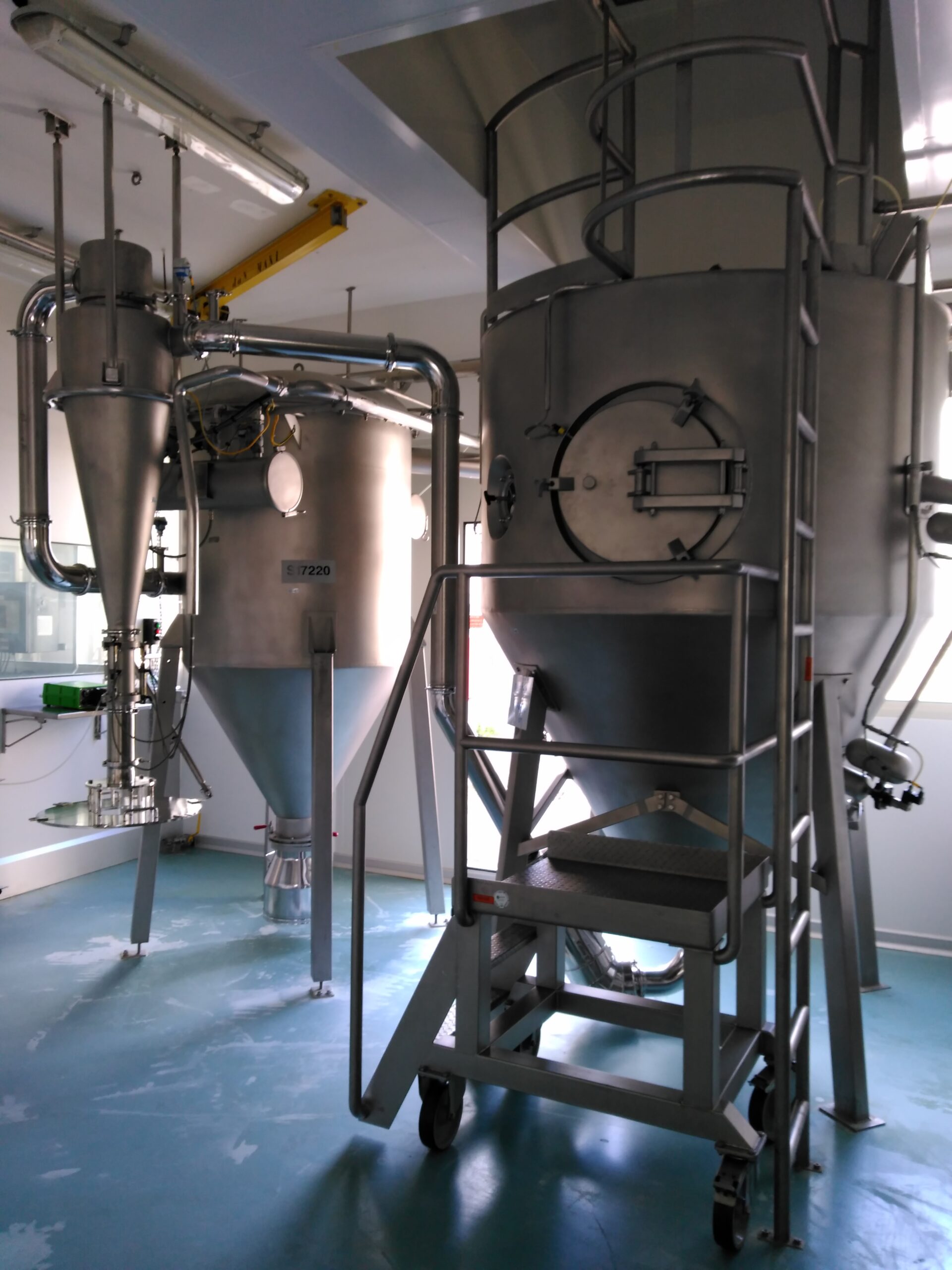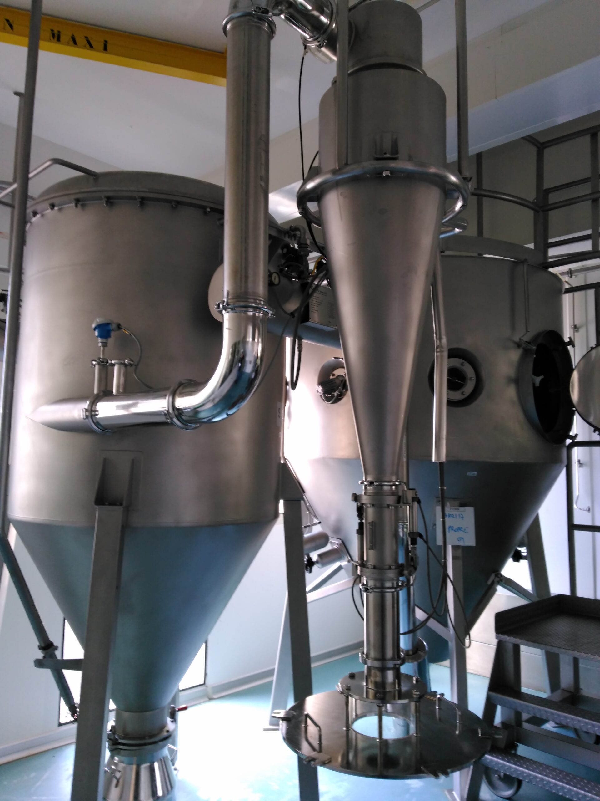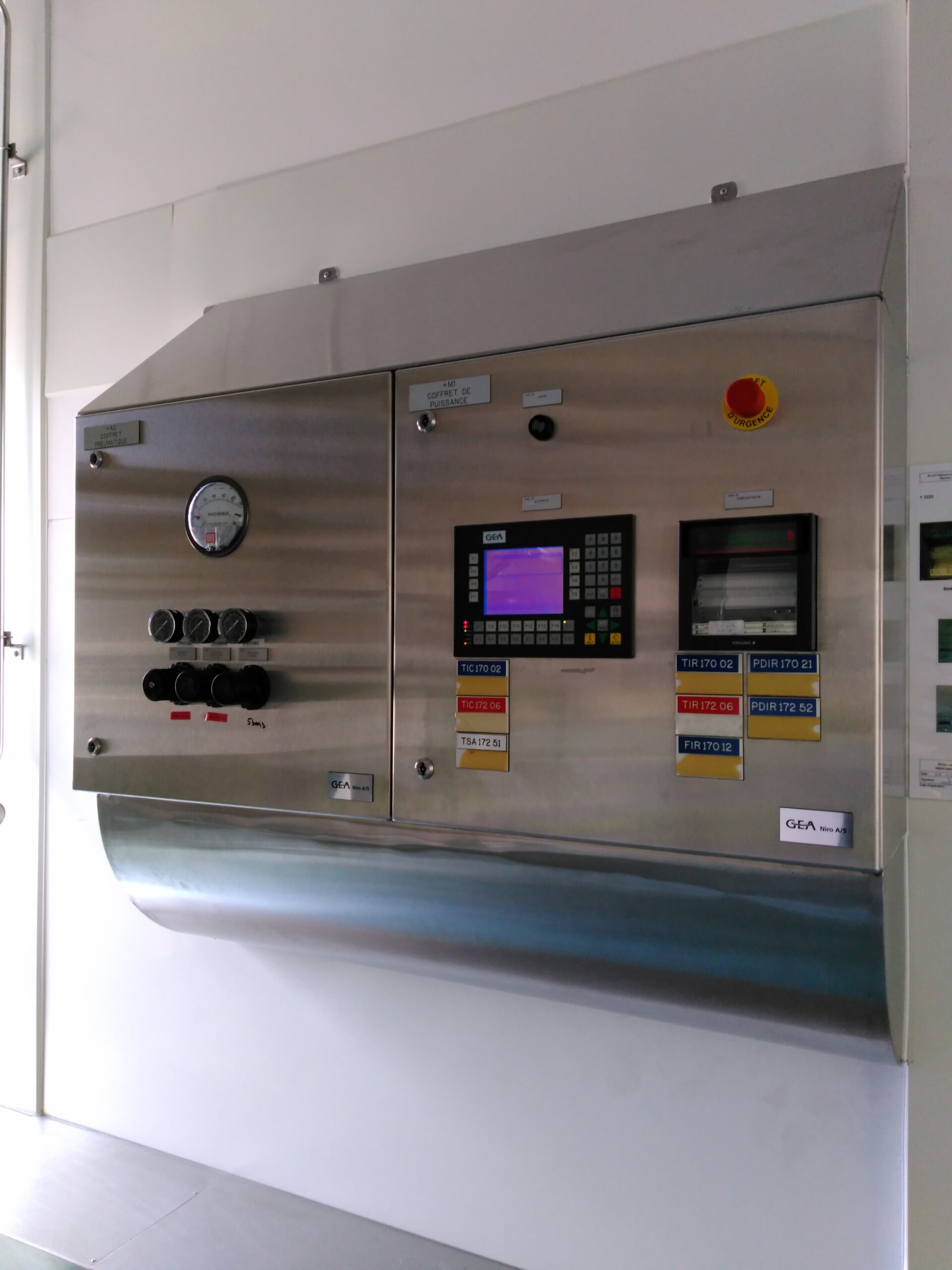 Spray dryer GEA NIRO P 6.3 Atomiseur rotatif type FS1 (30 000 tr/min max) Chambre de séchage diamètre 1600 mm, hauteur 800 mm, cône 60° Capacité évaporative : 10-60 kg/h Taille moyenne des particules : 10 à 100 µm Année de fabrication 2000, mais utilisé que quelques années Parties en contact avec le produit AISI 316 2 turbines (1 neuve et 1 remise à neuf) Non ATEX Conclusion de l'audit mécanique réalisé en 2024 par GEA : "L’état général actuel est excellent. Seul l’automate, déjà identifié endommagé en 2017 nécessite vraiment d’être remplacé." (rapport envoyé sur demande)