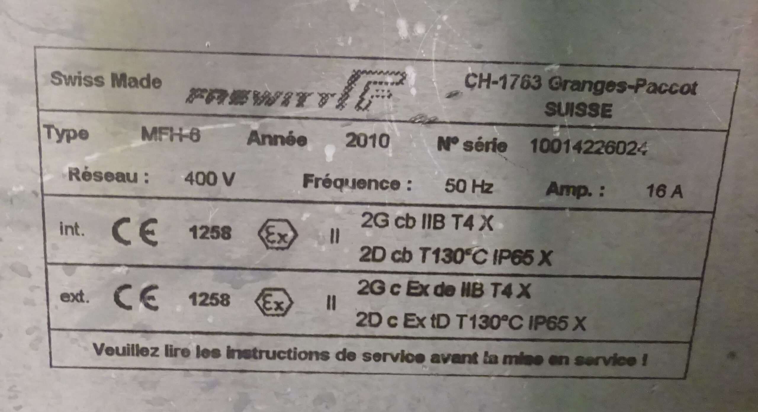 144i-170 - 1 FREWITT MFH-6 ATEX de 2010, sur vérin