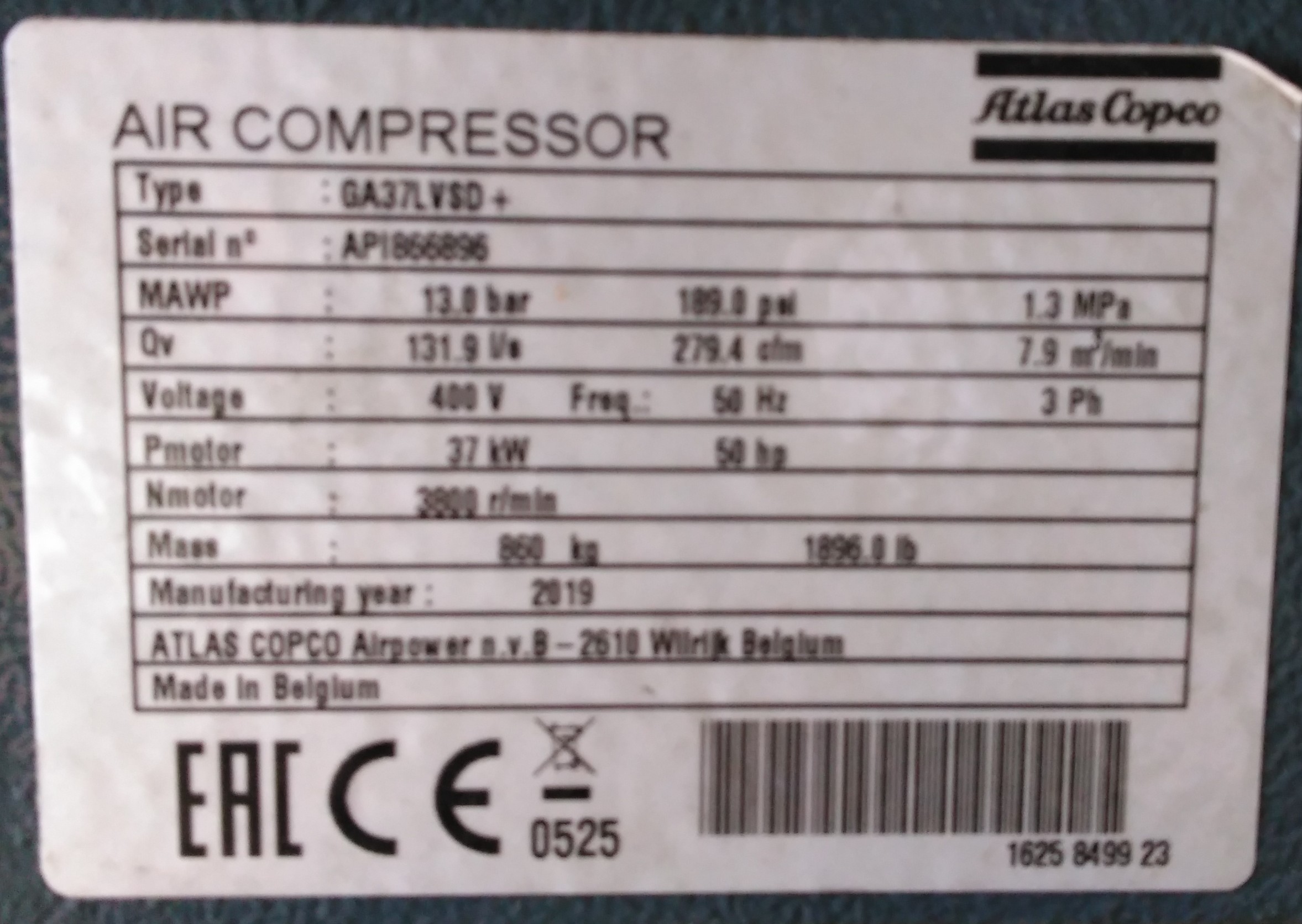 144m-502 - 1 chaudière 3 T/h 144m-512 à 514 : installation air respirable 144m-503 - 1 Air dryer BD150+ de 2020 144m-504 - 1 Air dryer CD100+ de 2016 144m-505 - Air respirable CLR140 144m-506 - 1 Air compressor GA37LVSD+ de 2019 144m-507 - 1 Air Compressor GA30VSD+ de 2016 144m-508 - 1 Tour d'abattage cryogénique des COV 144m-510 - des palans 144m-509, 515 à 517 : des ventilateurs